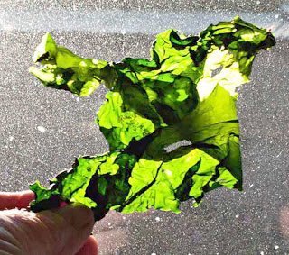 I often pick up seaweed to use in omelets. I put this in the window to dry and the next day this is what it looked like with the afternoon sun shining through it.