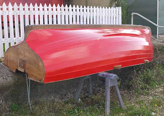 This is a lapstrake rowboat, with a full-length keel. It is not a dory, which has a flat plank bottom and no keel.