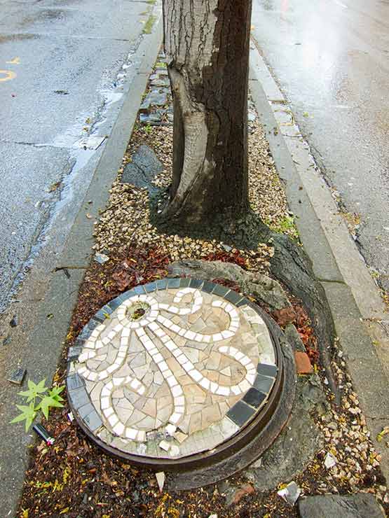 Above photo, taken 10 minutes ago, of divider strip on Columbus Street, outside Cafe Roma, North Beach, San Francisco