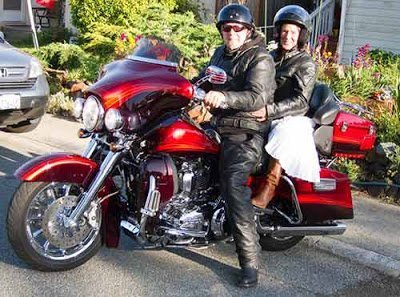 Anne and Chris Elkington on their Harley in Mill Valley, Calif. last weekend