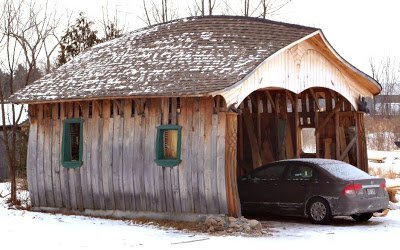 I send you a picture of a construction call: “Garage à gargouilles” (in English Gargoyle’s garage) that I did some 10 years ago (most of my building have a name. Some curves look like to the house of Lloyd House that is in your marvellous book: Builder of Pacific Coast, which I discover only last year.…Claude Drolet from Québec