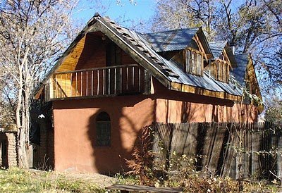 This adobe casita is near the Rio Grande River in Albuquerque, New Mexico.