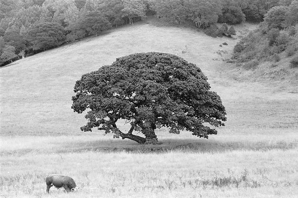 This tree was a landmark for years in the valley we drive through to get to Petaluma. I shot this photo maybe 15 years ago and we used it for our logo. It was on the banks of a creek, which was probably too wet a location for it, and a few years ago it died. Here it is in its glory days, studly at the left.