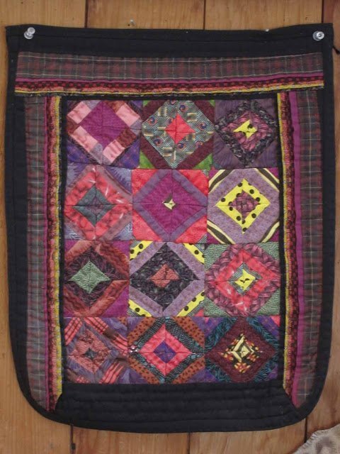 I’ve had this little piece by Lesley hanging on my office wall for some years. It’s 13″ by 16″. I love the asymmetry within the symmetry of her quilt work. See: https://www.lesleycreed.com/