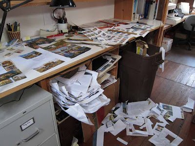 This morning I came out and surveyed the results (+ the carnage, shown here) and it’s lookin pretty good. Lew and Rick are coming in today and the 3 of us will work on it. By the time we get it done, the cover will be the work of 5-6 people.