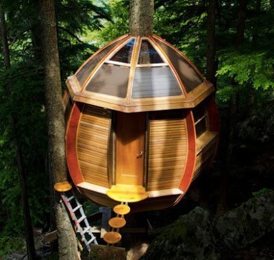 I just found this neat blog and figured it’d be good for a blog post or spot in your next book (even if it’s not a boat). He’s secretly built a beautiful egg shaped treehouse in the backcountry near Whistler BC, and his story about how he did it is pretty entertaining to boot!
