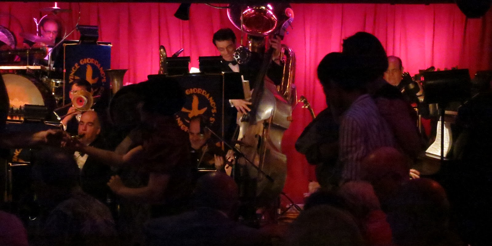 Thanks to a tip from singer Tamar the night before, I ended up going down the stairs of Sophia’s on 46th Street last night, and it was like time travel, stepping into another era. The Nighthawks, an 11-piece band dressed in tuxes playing music of the 20s and 30s, and were they good! The dancing was spectacular. There was a tuba. A guest singer, Ginger Something from LA came onstage and did I wanna be loved by you, boop-boop-ee-do to perfection. The crowd 50s, 60s, even a few ancient 70 year olds. Dancers younger. Room full, fine ambience. Duke Ellington, Tommy Dorsey, Kate Smith (Fine and dandy, sugar candy), Gershwin. I had clam pasta at the bar that was excellent.