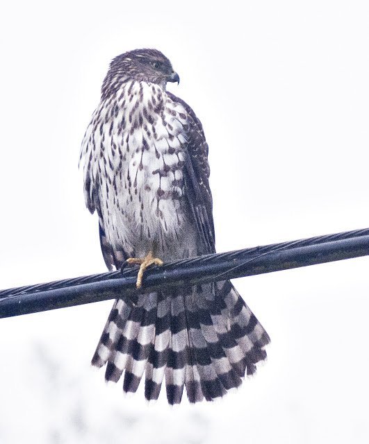 over the last three years, I've had a pair of Sharp-Shinned hawks in the trees next to my house. They don't seem to bother the local songbirds much, but things can get exciting at the bird feeder.