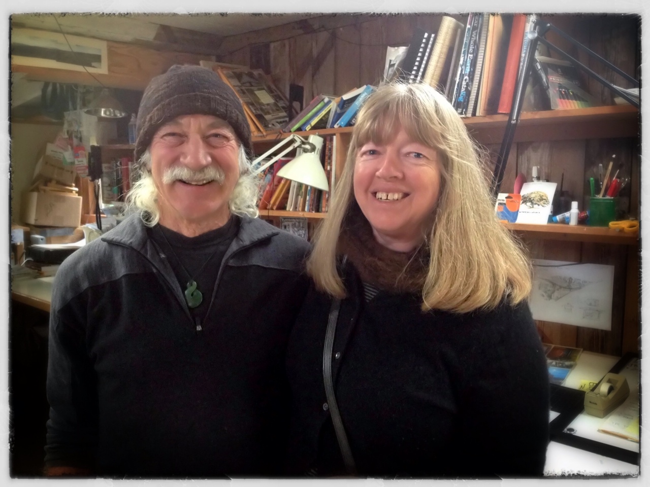 Bill and Athena Steen are authors of The Strawbale House Book, which became a best seller and started the strawbale building movement in North America. The Steens live at the end of a road in the desert south of Tucson (not far from Patagonia, Arizona), a lovely compound of strawbale and adobe structures built of natural materials. I’ve been down there 3 times and this is the 1st time they’ve visited us in California. See their website here: https://www.caneloproject.com. Their work has been featured prominently in our books Home Work and Tiny Homes.