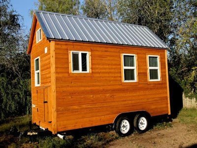 “Recently built tiny house on a new 8×16 dual axle trailer. Cedar tongue & groove siding, double pane windows, and a metal roof.