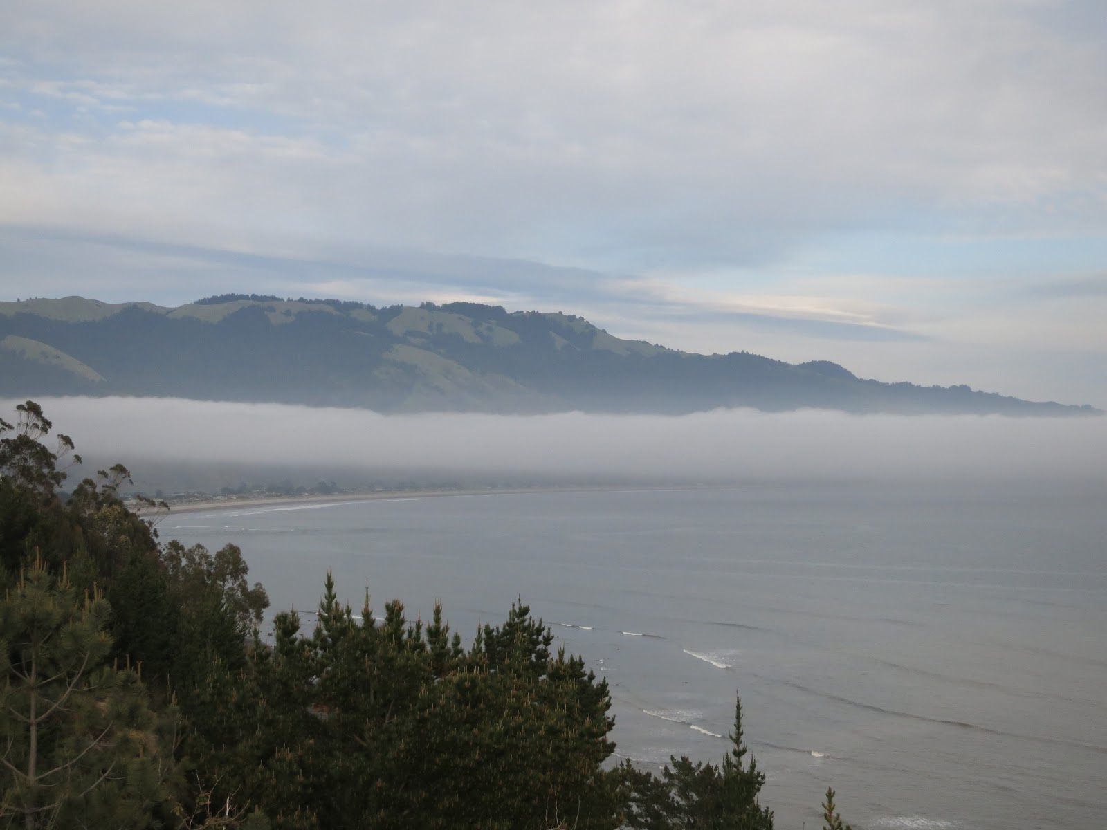 -Line of about 20 pelicans single-file, flying about a foot above the waves. They often get into the updraft of waves and fly without moving wings. Watched them from above, and they flew around a cove and circled a few times before settling.