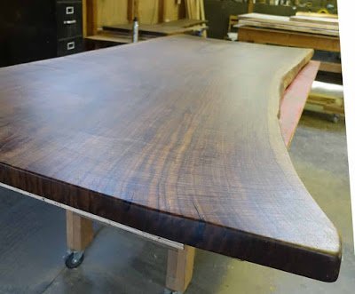 Shown here is a walnut slab that is 8′ 3″ long, and 60″ at one end and 43″ at the other. Think of the walnut tree that this came from.