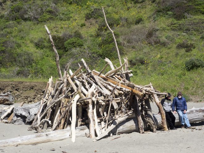 Louie and Titsch yesterday at Navarro Beach, windy day, lot of sun glare…