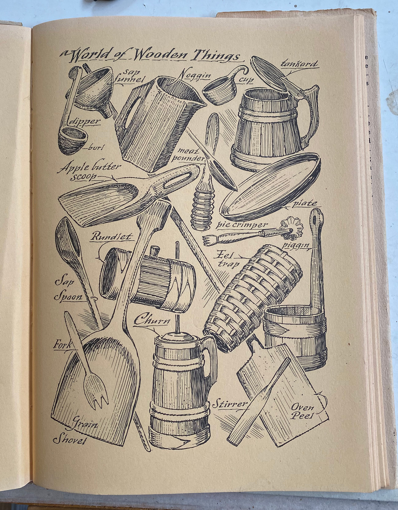 1. this sure looks like illustration style of Eric Sloane. matter of fact, I just found it on p 73 of A Reverence for Wood, published 1965. “Everybody’s Enquire Within” ???