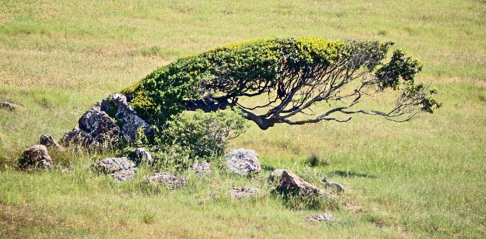 Every time I drive up to Point Arena to visit my friend Louie Frazier,* I admire this sculpture of wind and rock.