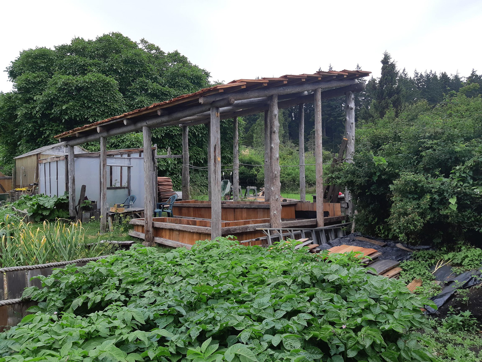 (My tower is roofed with shakes that Bruno split from driftwood cedar logs and that Misha drove down here in a van about 7 years ago.)
