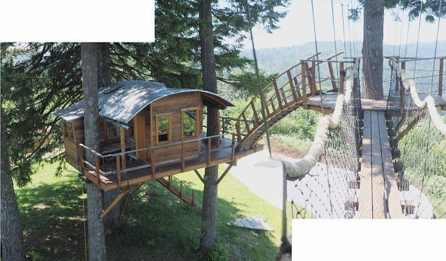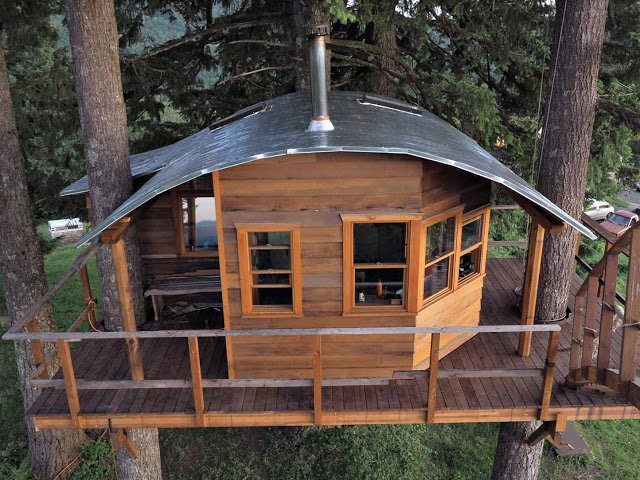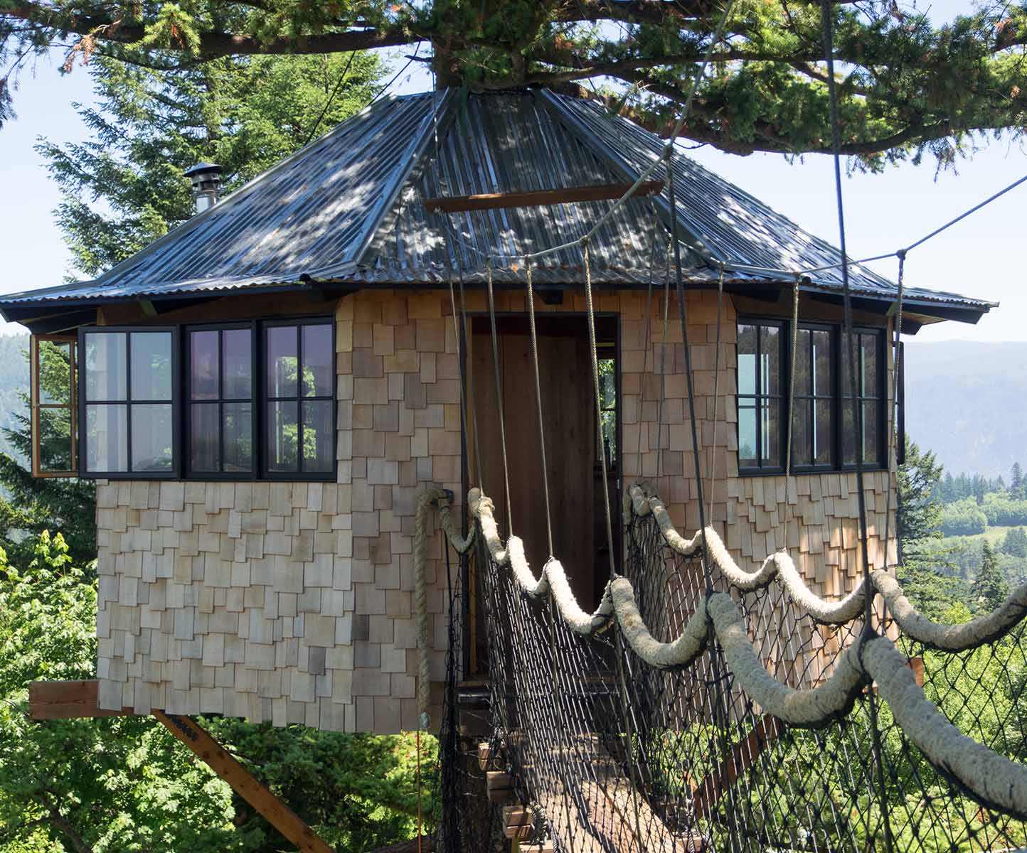 An example is Foster Huntington’s quite incredible compound built on a knoll in the Columbia River Gorge, about 45 minutes northeast of Portland. I wish I had time to do a feature article on this treehouse/skate park/hot tub complex that has a 360° view, which includes the (white) tip of Mount Hood and the Multnomah Falls (500+ feet tall)—I’ll get around to it eventually.