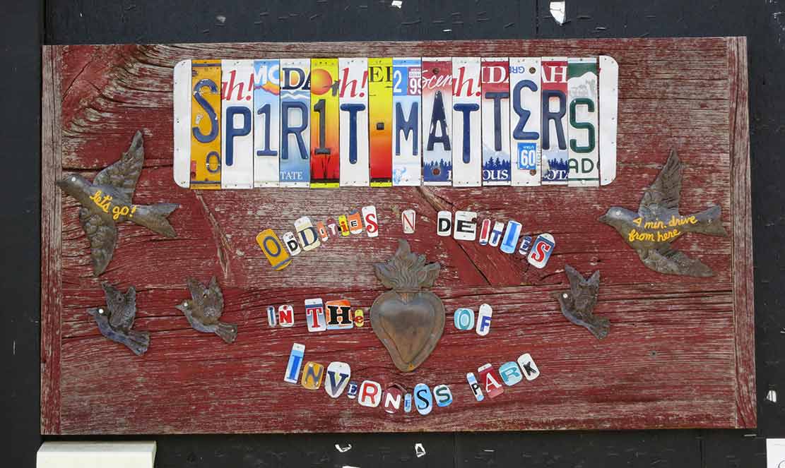 Sign made of license plates on Grandi Building in Pt. Reyes Station