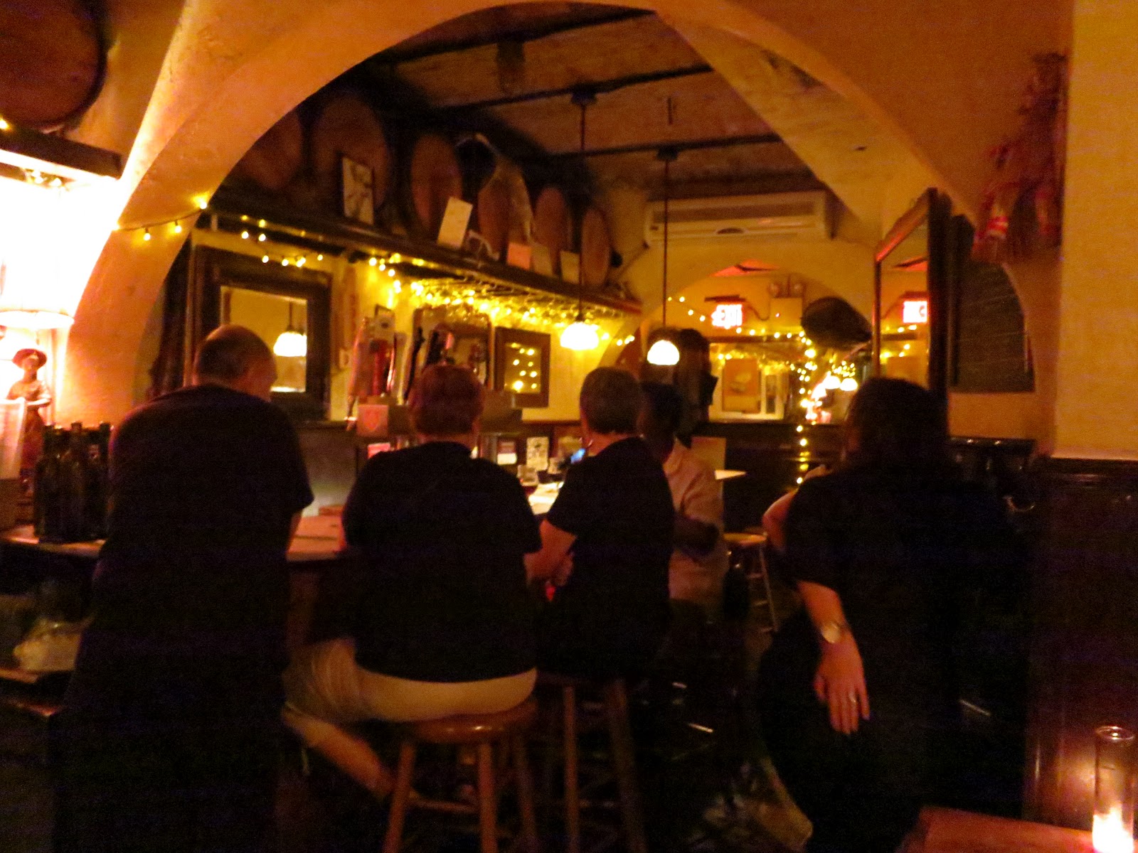 Thanks to a tip (comment) from Anonymous a few days ago, I went to Jimmy’s on this, my last night in NYC. Down a flight of dark stairs and into what felt like a medieval tavern on East 7th (#43, between 2nd & 3rd). You know how you enter a room and everything feels right? Had several glasses of Greenport Hoppy Stout and excellent pasta dish and talked to 4 different people at the bar. There’s something intimate about NYC; you’re in such close proximity to people in public places. This is a wonderful pub, in a formerly Ukrainian