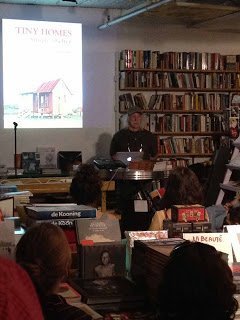 Spoonbill & Sugartown is a unique independent bookstore in the Williamsburg section of Brooklyn — everything in the book world that Amazon is not. This was my 15th signing/slideshow event in the last 3 months and it was off to a good start when, before I started, a big guy came up and said he first saw Shelter when he was 8 years old and it had inspired him to become a builder. Plus my good friends from Bolinas, now living in NYC, twin skateboarder/artists Shelter and Ivory Serra showed up.