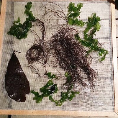 Lately I’ve been collecting it, drying it, then cutting it up into thin strips with a knife (powdering it in a coffee grinder makes dust that I’m sure is bad to breathe), then putting it on pasta, in omelettes, oatmeal, anything that’s hot, as an infusion of the sea and homemade vitamin and mineral supplement.