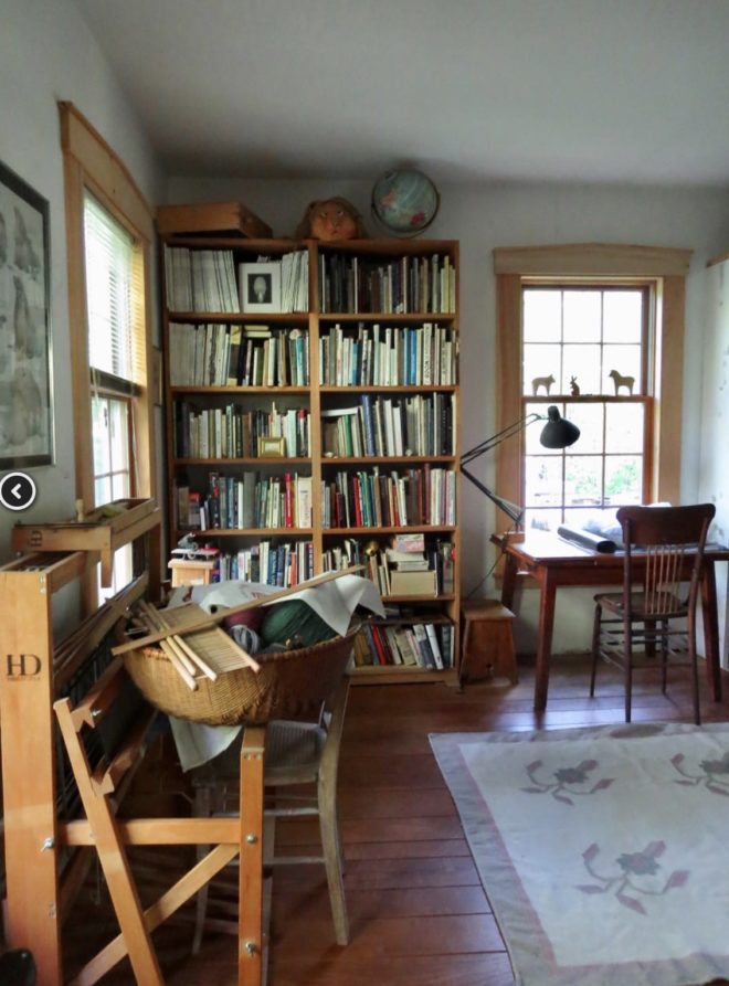 She flew out on a Wednesday, came out here for about four hours, including lunch, on Thursday, and went back to New York on Friday. She got it. She liked what we were doing, what we’d done, loved Lesley’s weavings, got the history right. I was happy with the article.