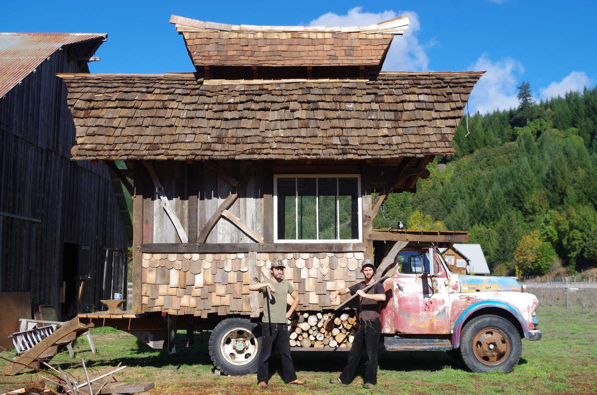 This is a tiny home they built in 10 days on an old Dodge flatbed truck in Humboldt County, California.