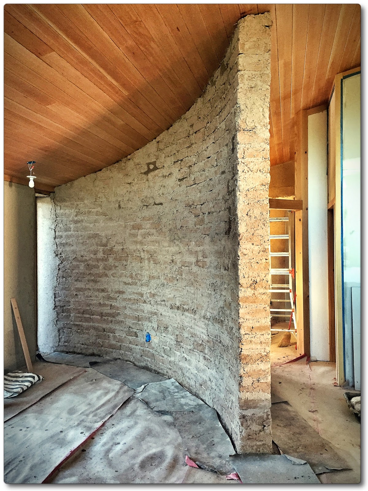 Bill writes: “Interior adobe wall in a clay plastered straw bale house we are helping our boys build in Sonoita, AZ.”