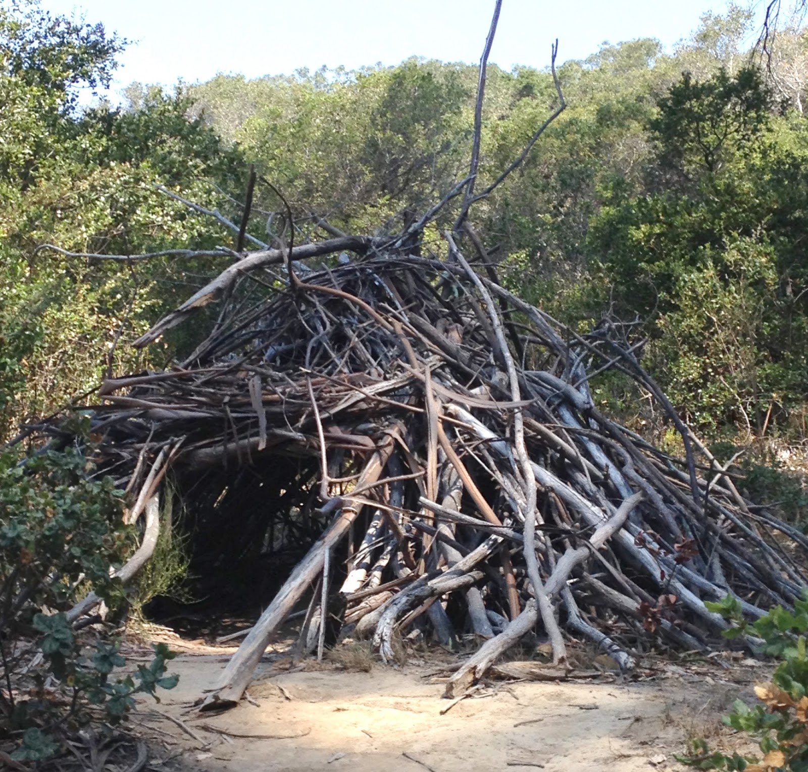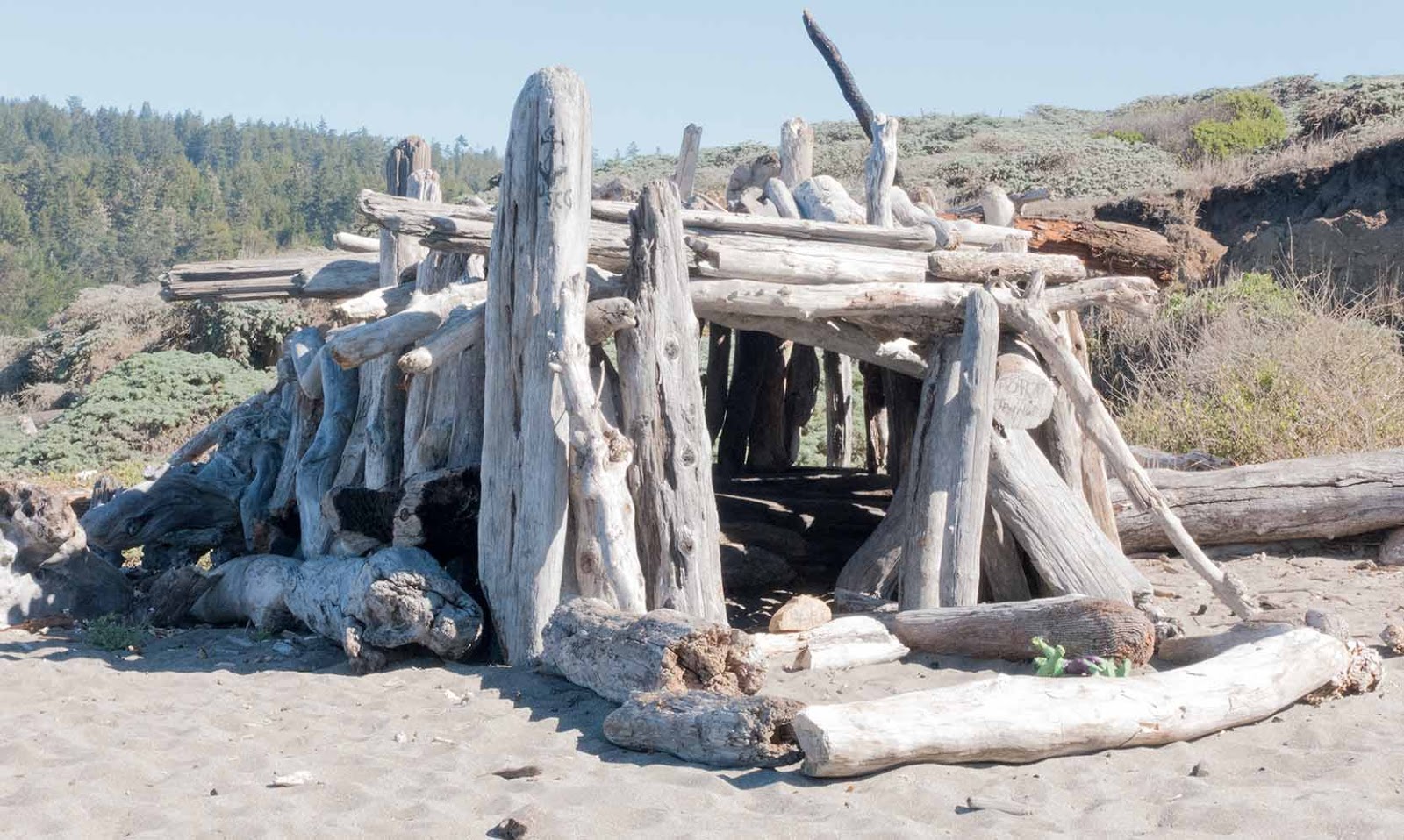 Last Sunday I was walking with my wife and dog (legal doggie trail) in the Marin Headlands and came across this fun looking shelter. You’ve may have already seen it but it caught my eye amongst the trees.
