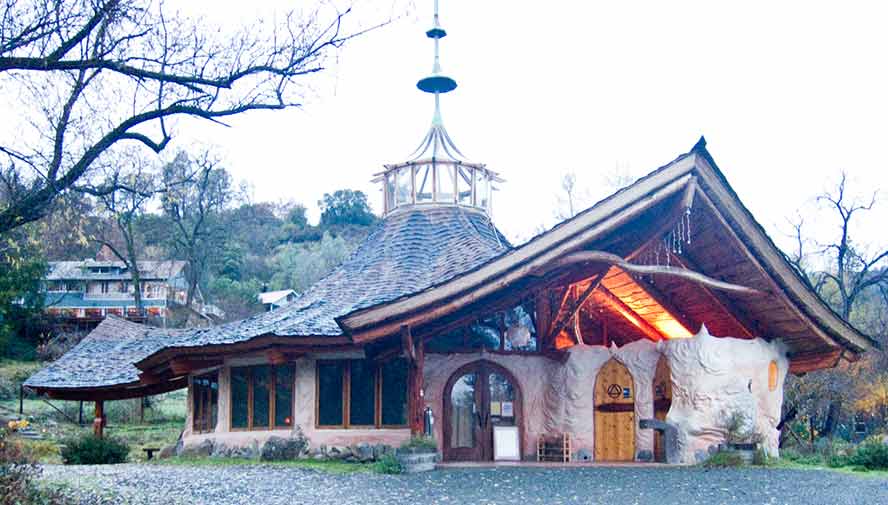 The unique natural materials temple built by SunRay Kelley in the northern Californai hills 3 years ago (and featured in Builders of the Pacific Coast) is holding up beautifully. I checked it out yesterday. The cob walls are still smoothly sculptured and unpitted. Everyone who goes into this building feels good. It’s a masterpiece.