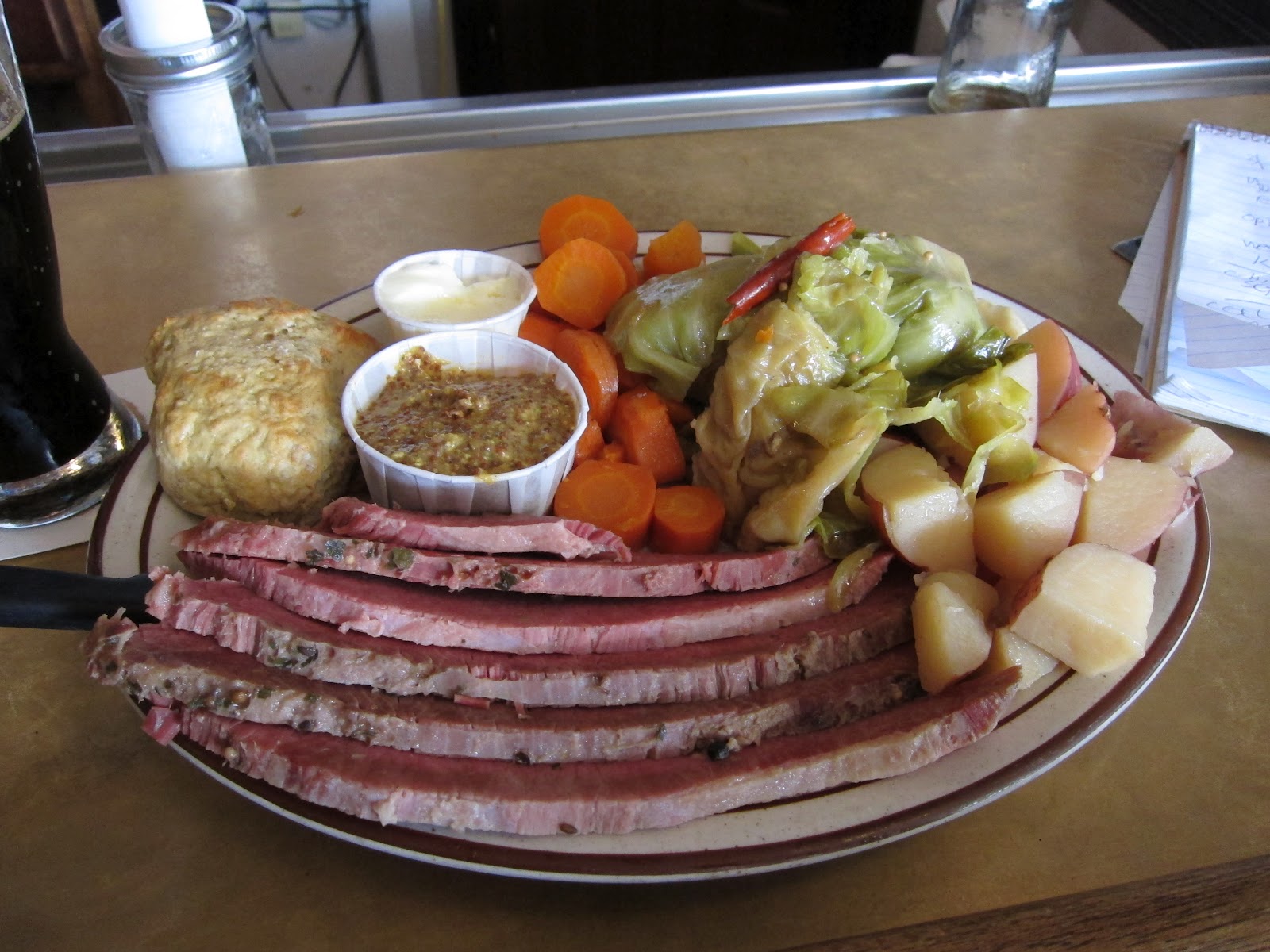 (Below: maybe my favorite brewery anywhere, The Lost Coast Brewery in Eureka. Had a 9.5% dark stout, corned beef and cabbage (was St. Patrick’s Day). I couldn’t have eaten a plate of food this size when I was 18 and surfing every day.