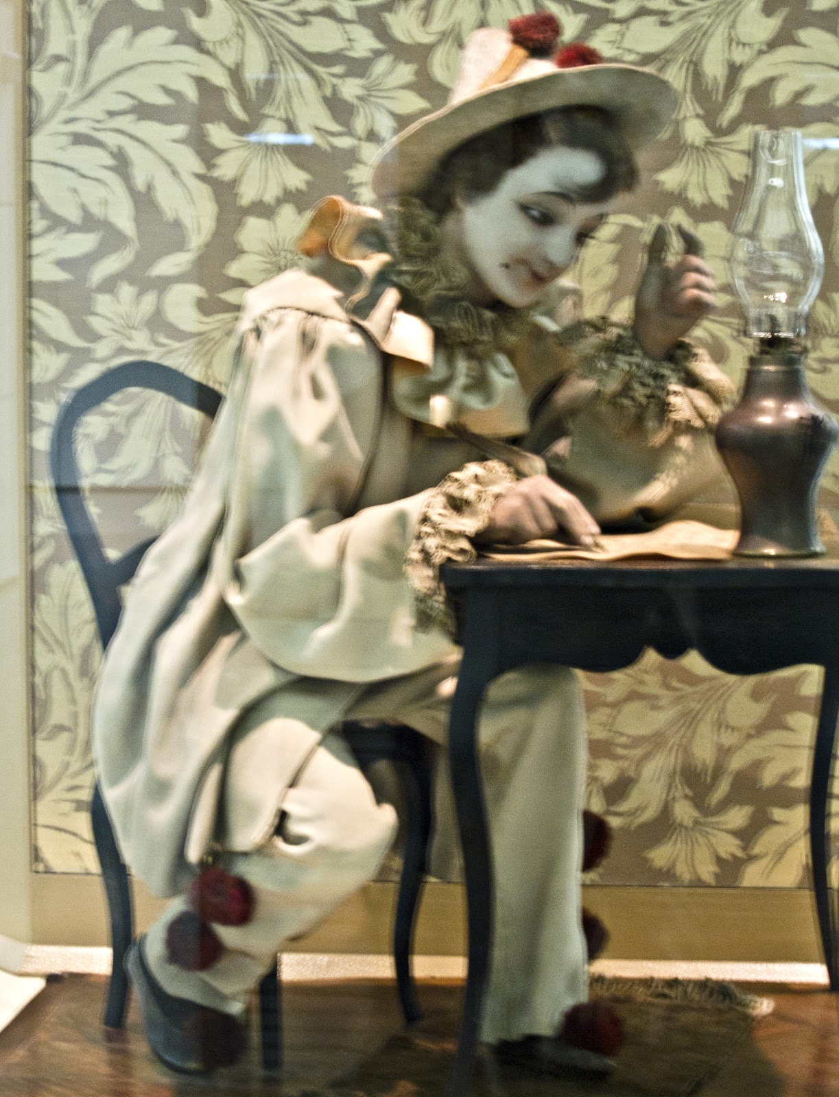 Here are a few photos from the SFO International Airport this morning. They have fabulous exhibits there. There were 3 exhibits: Automata: vintage mechanical French puppet-like figures, some of which seemed alive; a stunning exhibit of vintage Italian motorcycles; an exhibit of old microscopes.