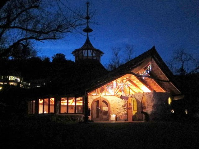 I took off from the madness yesterday and went up to my brother’s farm in the Napa Valley to split (oak) firewood. A chance to do something physical. Exciting to get on the road with camera (yesterday only the Canon Powershot G-95). Afterwards I went over to Harbin Hot Springs to take a look at SunRay Kelley’s temple (pp. 65-71, Builders of the Pacific Coast), and it looked in great shape, cob and all. It’s a beautiful building, and it should have a little brass plaque on it saying : “Designed and built by SunRay Kelley,” but the Harbin management is a weird bunch, and they give no credit to SR. There were about a dozen people inside doing yoga, and it was a lovely atmosphere, the wood and the cob and the lighting all in a soft glow.