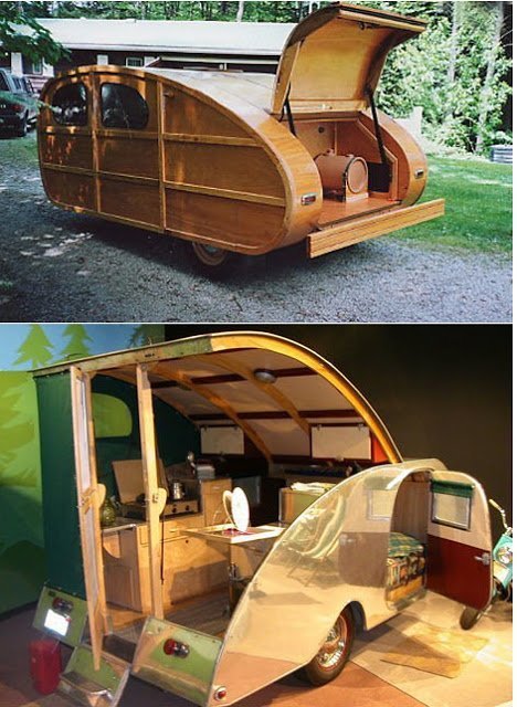“Here’s an item from America’s past I would not have imagined would make a comeback: The teardrop trailer. First produced during the Great Depression and designed in the Streamline Moderne style, the towable campers were lightweight, economical alternatives to full-sized trailers. They typically offered sleeping/lounging space, storage, and a makeshift cooking/food prep surface. Gas prices being what they are these days, teardrop trailers are back in vogue; some models are so light they can be towed by microcars and even motorcycles.…” Posted by hipstomp, 23 Jan 2012