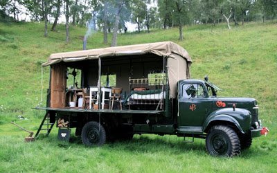 Here in the states it would be quite easy to acquire an old military vehicle similar to this with a canvas back and perform a similar restoration as The Beer Moth to make nice little tiny house on wheels.…”