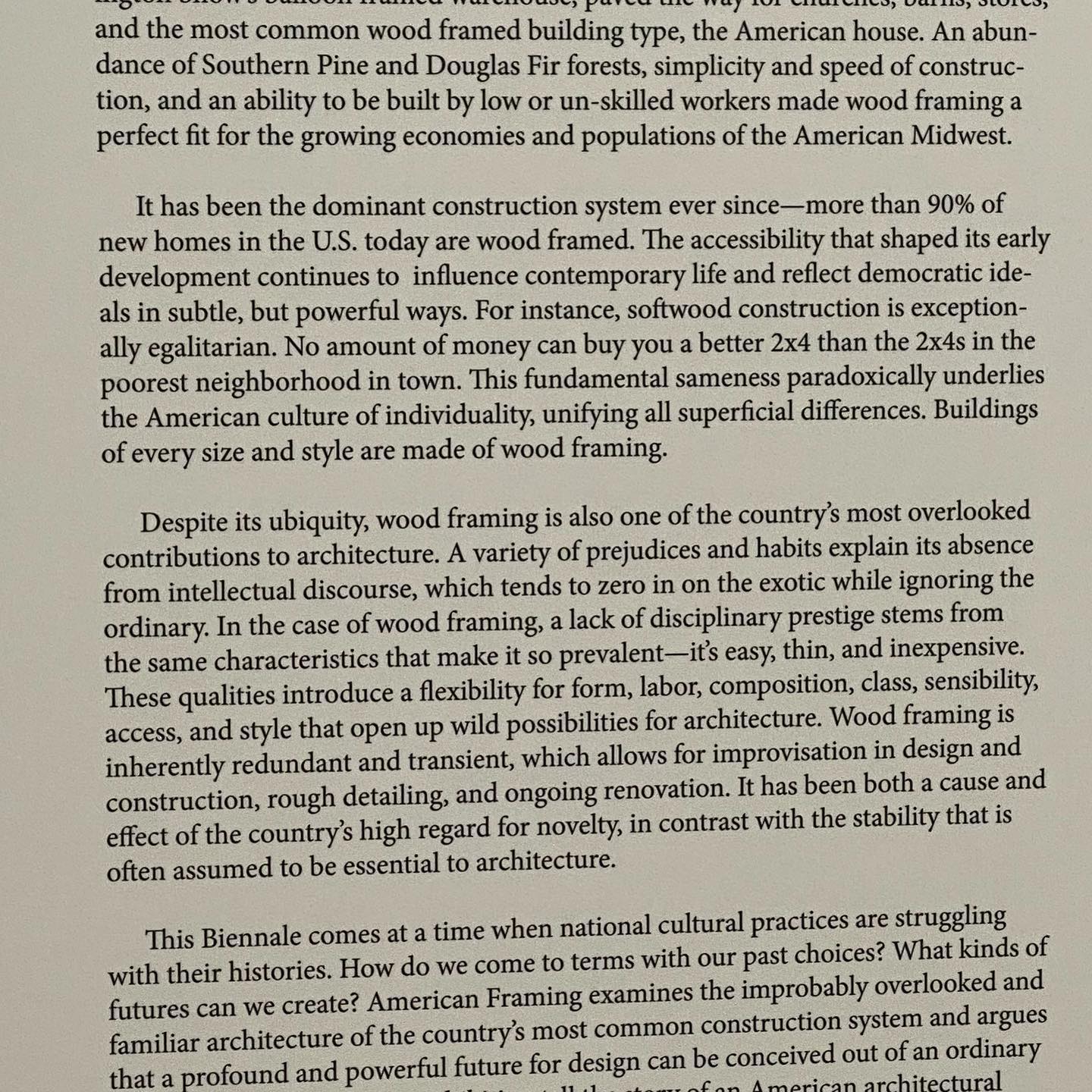 There is a wonderful exhibition of wood-framed buildings at the American pavilion of the Architecture Biennale in Venice, with a large pavilion and a bunch of exquisite models.